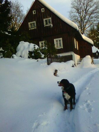 Sněhu bylo plno a tak si obě holčičky krásně vypraly kožíšky a radovaly se z dovádění v závějích. Paráda! Cikorka si také vyzkoušela závody se saněmi a boby a nadšení bylo dokonalé :-D
